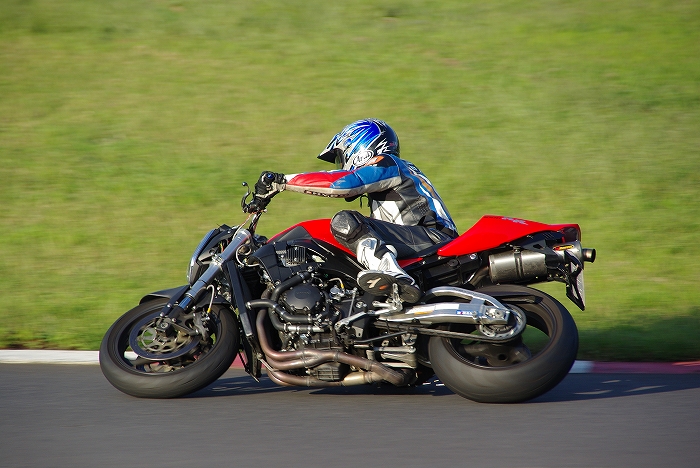 Takeshiさんは、普段はYZF-R1を駆るフツーのサーキット野郎ですが、なんとバグブロミートの車両規定に合うように弟さんのK1200Rを借り受けエントリーし、更にはファイターライクなルックスにする為に、バンディットXXRと『STREETFIGHTER』製のライディングウエアまでご購入して頂きバグブロミートに参加して頂きました。しかも、エントリー後は、実に3ヶ月もの間誰からもエントリーがなく、その間のTutumi